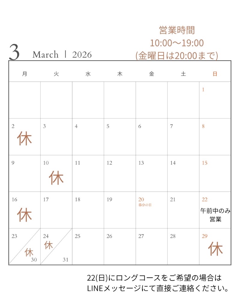 ⚫︎ 手術後や治療中、体調不良などの場合、施術をお断りする場合もございます。心配な方はご来店前に一度ご相談下さい。