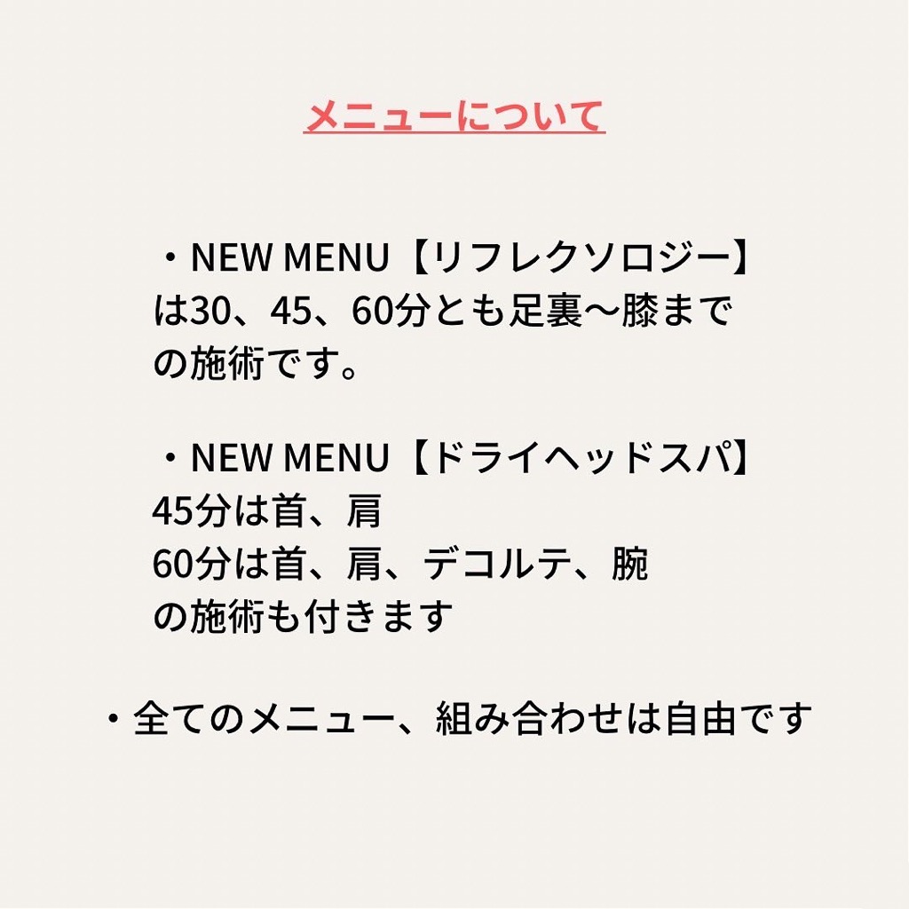 また、施術メニューを一部変更させていただきます。